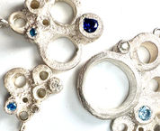 Each piece is individually sand cast. Some have stones set into the metal at the time of casting.
